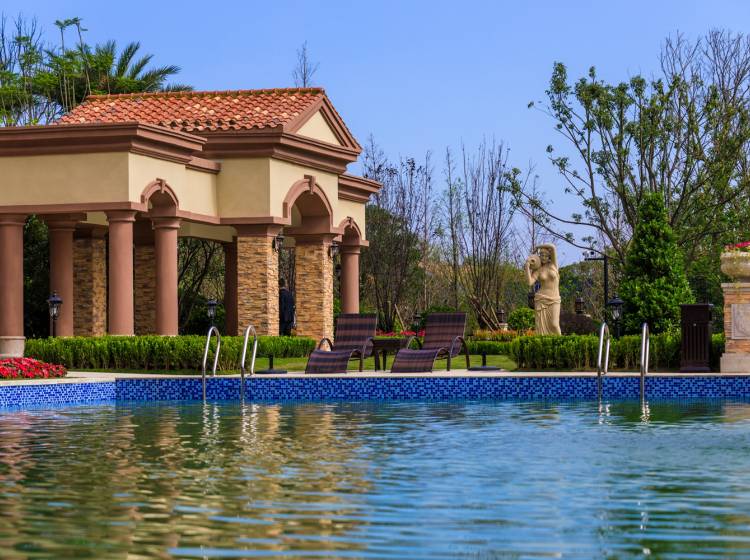 16.1000㎡御园高端会所、990 m 沿江景观步道、4000㎡社区便民商业、200㎡露天亲水泳池