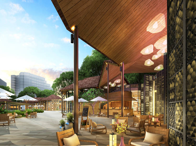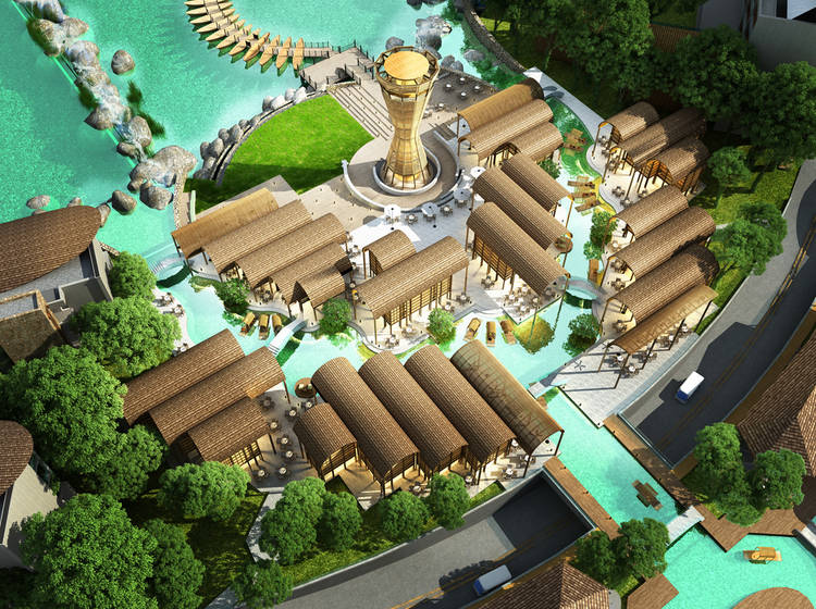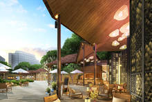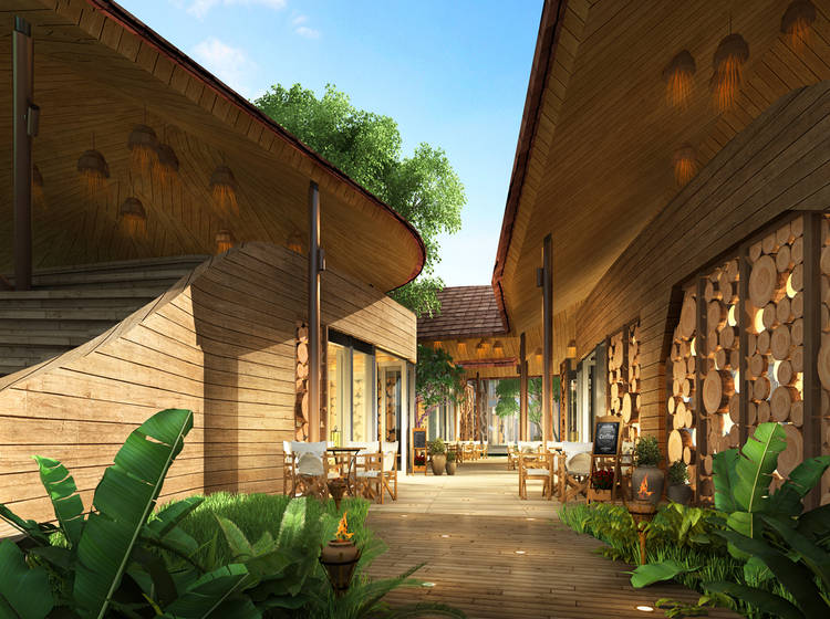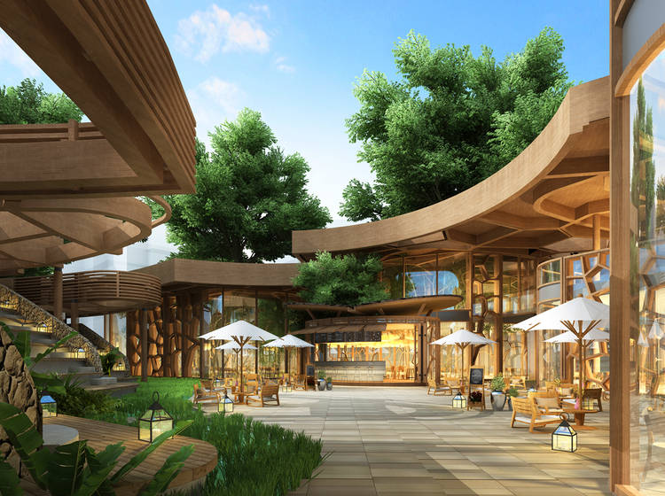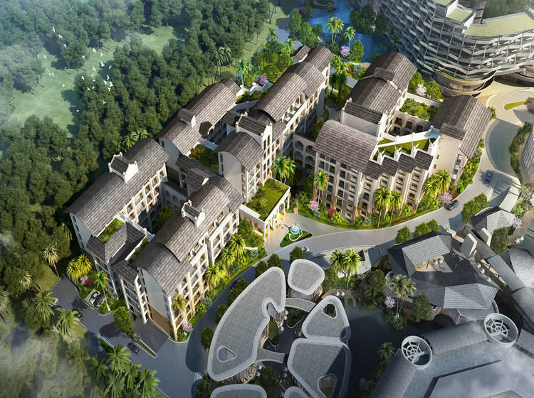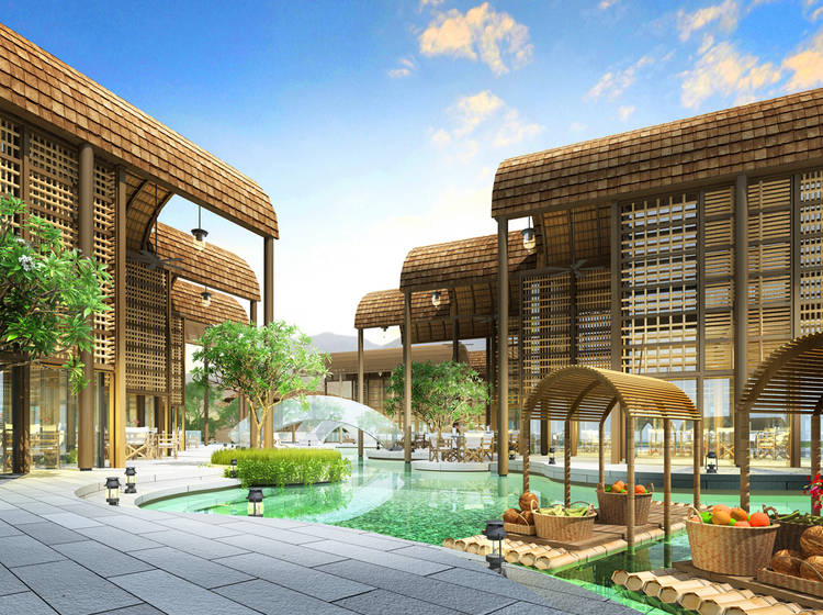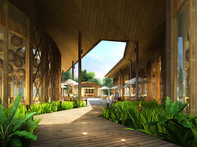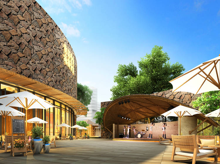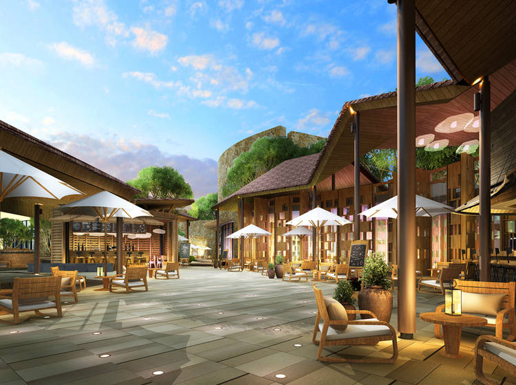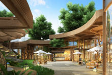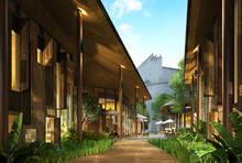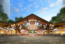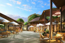 打破传统酒店商业内置的布局模式,将居住以外的所有度假生活消费,都分布在酒店外、环状的商业空间内,22个部落将涵盖吃、喝、玩、乐、游、赏、拍多种度假商业态。