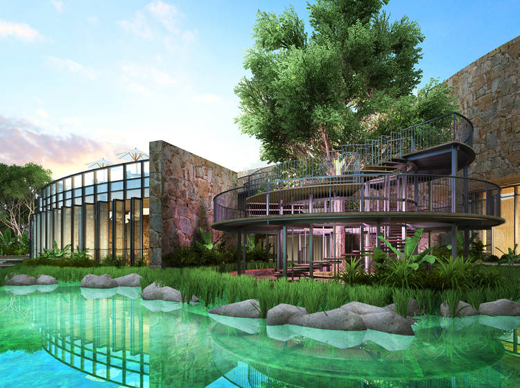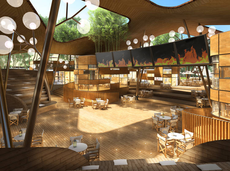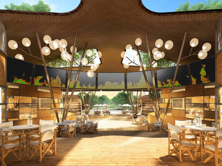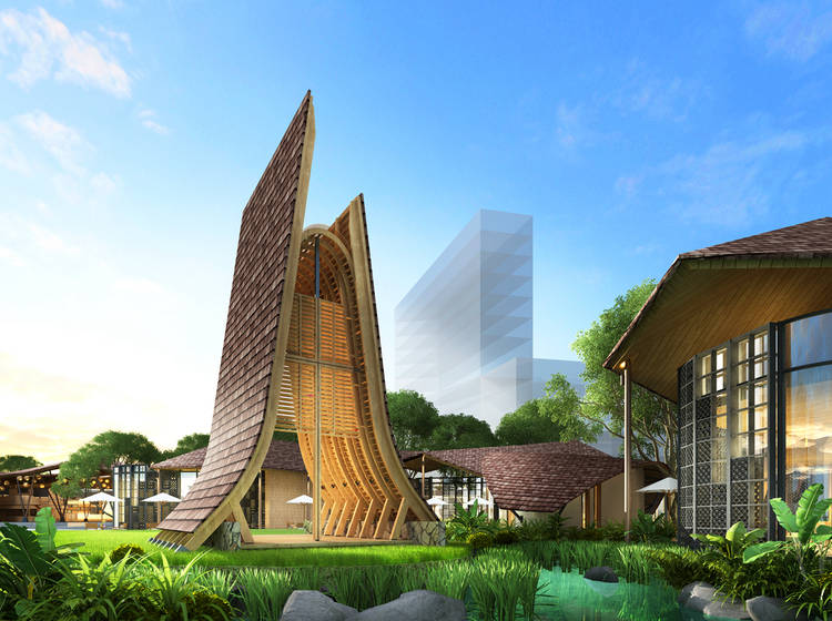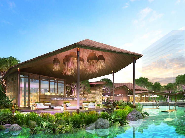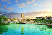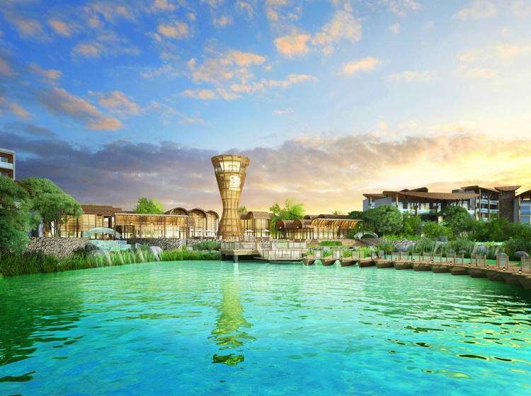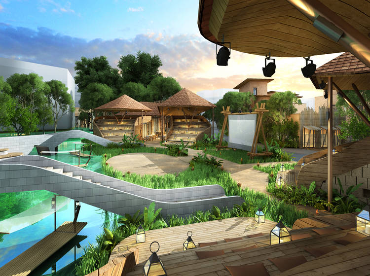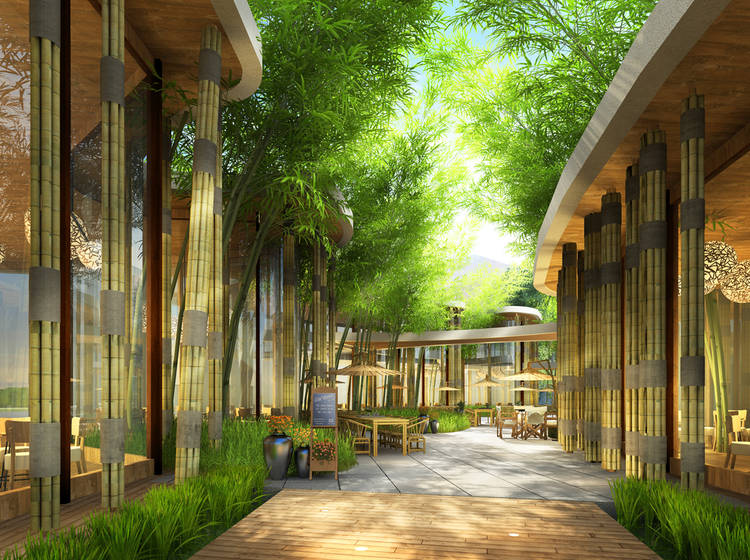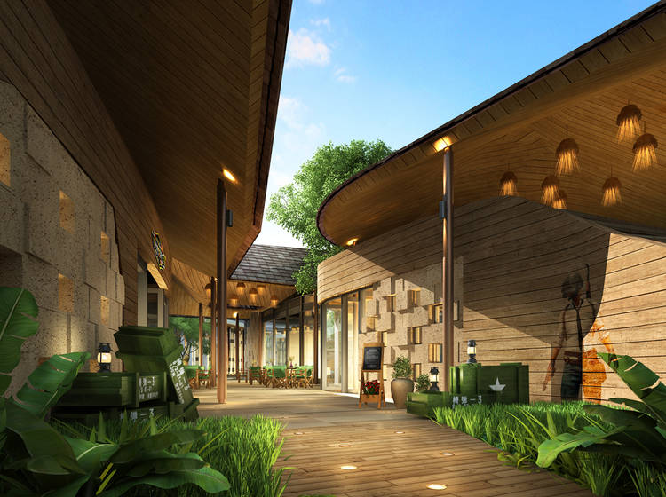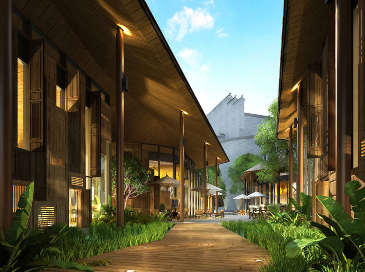 打破传统酒店商业内置的布局模式,将居住以外的所有度假生活消费,都分布在酒店外、环状的商业空间内,22个部落将涵盖吃、喝、玩、乐、游、赏、拍多种度假商业态。