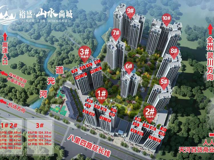 裕盛山水尚城位于桂北高铁经济产业园,立志打造片区人居标杆,构筑一片舒适惬意的城市栖息地,致敬桂林北新城。