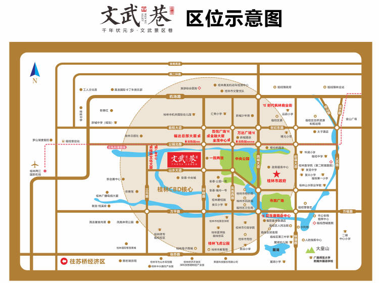 文武巷由桂林市文化体育产业投资发展集团有限公司开发,项目择址临桂区一院两馆旁,是一院两馆文旅配套项目。总用地面积约合27亩,总建筑面积约5万㎡ ,由3~4层面积在20~400㎡的状元特色文化商业街区及两栋5~11层单套面积在45㎡左右的酒店式公寓组合而成。