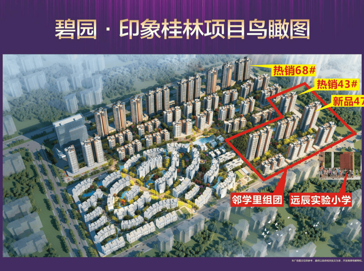 一站式教育:小区自带博之特朗幼儿园!一墙之隔即是远辰实验小学!百年名校桂林中学临桂分校就在小区斜对面!还有碧园集团独资创办的首师大附中!中学学区是新龙中学!