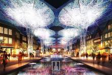项目计划分三期进行建设,划分为三大主题功能区:综合性商业休闲MALL、特色休闲娱乐区、酒店区。