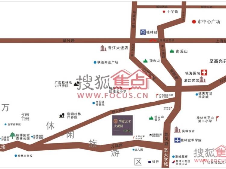 幼儿园、大风山第一小学、桂林市第十一中学、夕阳红疗养院、柳钢桂林疗养院、桂林国家森林公园、交通部疗养院、空军疗养院、桂林翰林双语书院、桂林市党校、桂林甑皮岩遗址景区、相人山景区、桂林空军学院、德天万货批发城