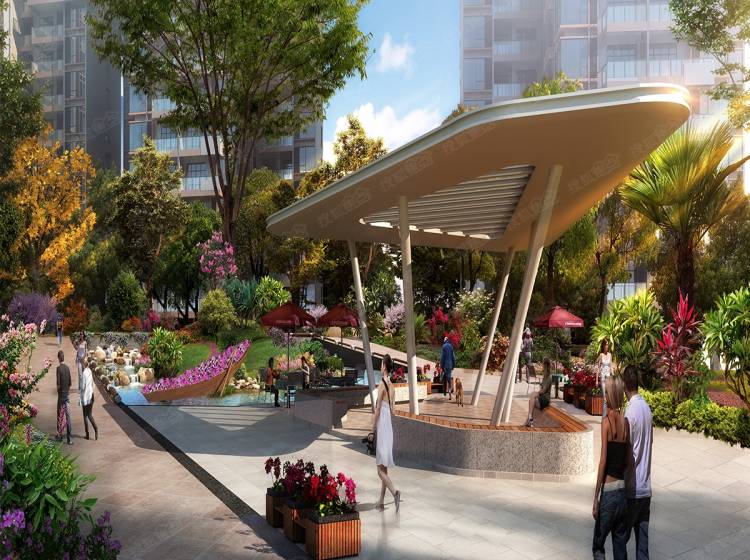 中糖大城小院建筑立面采用了现代简约的设计风格,以外墙砖和涂料结合,色彩简洁明快充满活力,线条清新爽朗不失内敛。