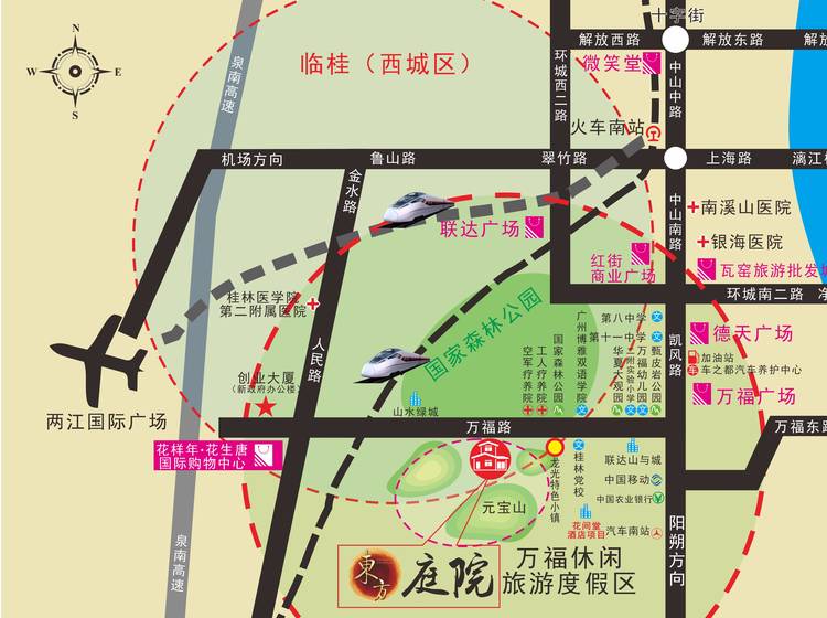 东方庭院位于临桂区万福路中,是集观光、休闲、疗养、度假、娱乐为一体的综合旅游目的地。