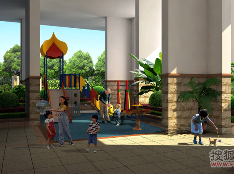 小区内配套:商业街、2000平米中央艺术叠水广场,架空层老年建设设施,儿童游乐设施。