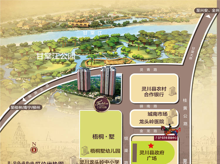 周边配套:灵川县新政府广场、城南市场、龙头岭医院、妇幼保健院、灵川县龙头中小学、梧桐墅幼儿园、灵川一中、灵川二小,灵川农村合作银行、农行等。