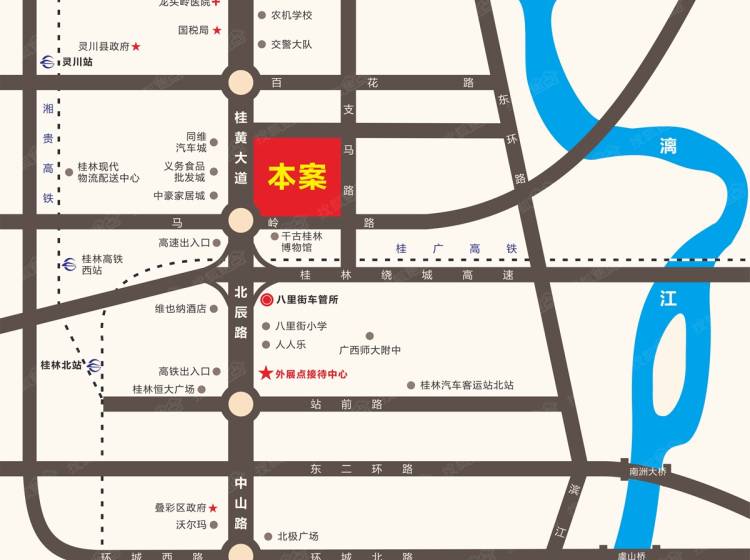 灵川 桂林桂黄大道与马岭路交汇处(距绕城高速出入口150米)