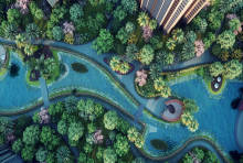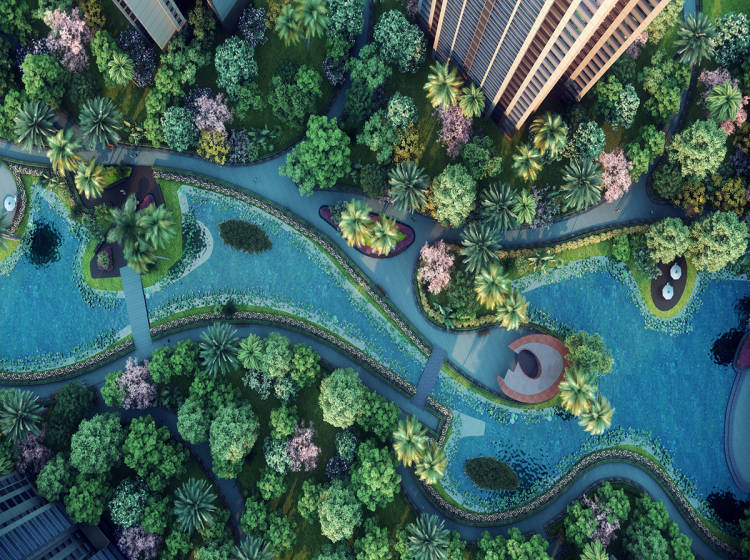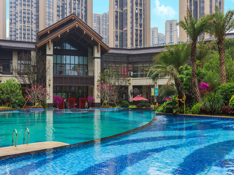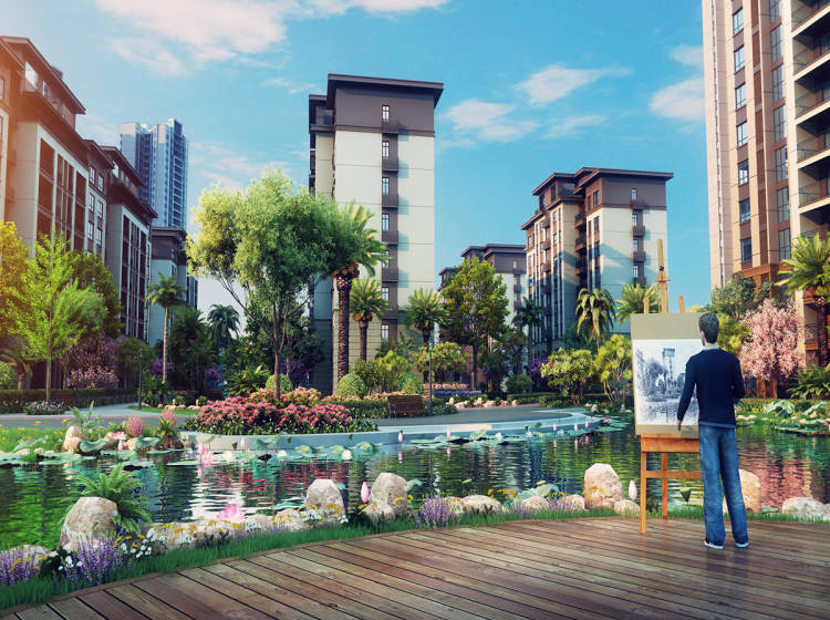 小区高层楼栋为2梯4户/2梯5户,总高28-35层,洋房一梯两户,总高8层/11层,外立面为浅黄色涂料+浅咖色涂料而成。外墙风格属新亚洲风格,【新亚洲风格】是目前极受国际建筑界推崇的一种理念(它主张以具有浓厚地域特色的传统文化为根基,融入西方文化。把亚洲元素植入现代建筑语系,将传统意境和现代风格对称运用,用现代设计来隐喻中国的传统。重在关注现代生活舒适性的同时,让亚洲传统文化得以传承和发扬)。规划理念采用点式错开式布局,洋房、高层通过塔楼及沿街商业围合成小区中央水景及庭院,并于中央庭院外围设置辅助性组团空间。