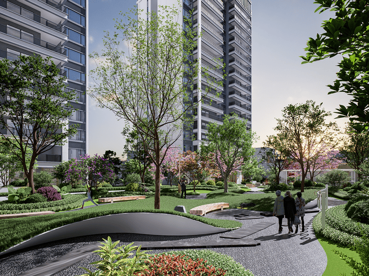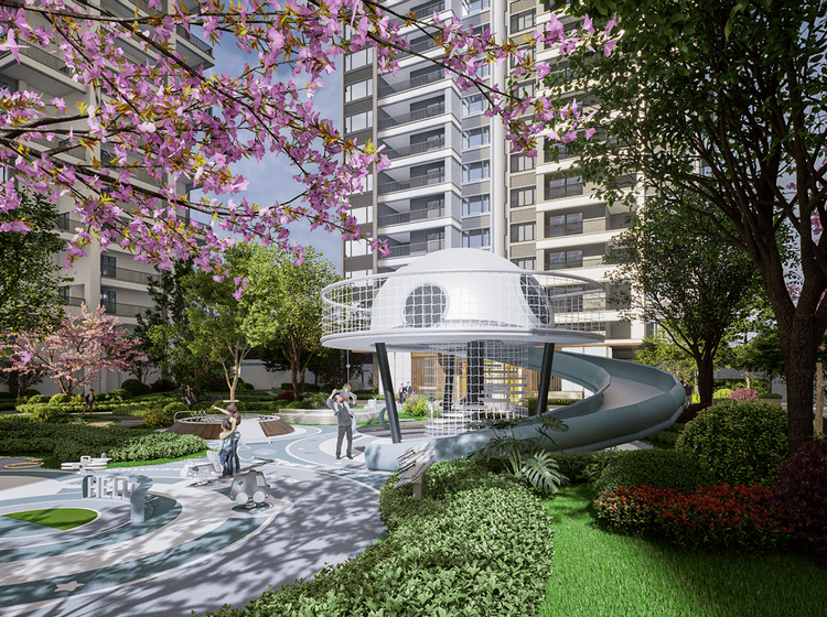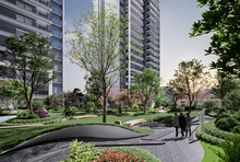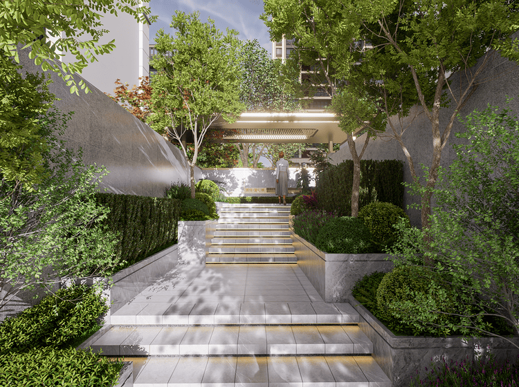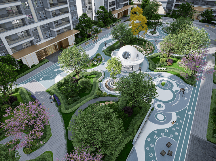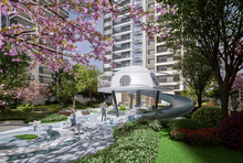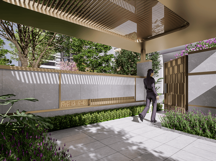 项目首创“公园归家礼遇”体验,外有凯佳公园,内有约 3.3 万围合式园林,以一轴一环七境多节点设计,构筑理想生活蓝图