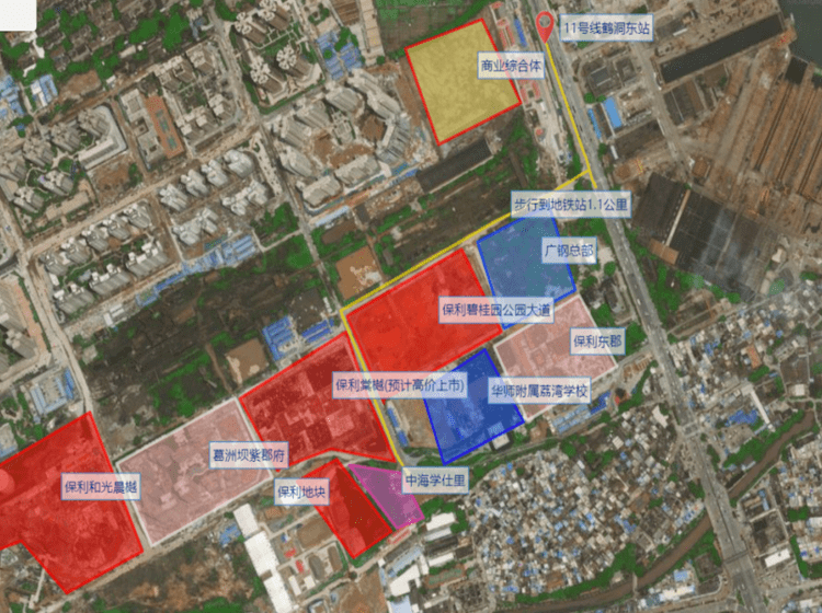 综合商场:东面即为规划的大型广钢总部城市综合体,包括大型商业综合体、五星级酒店、总部大楼、时尚SOHO等,未来步行可达规划广船大型滨水商业区、广州国际医药港商业区、中海花湾天地等商业综合体