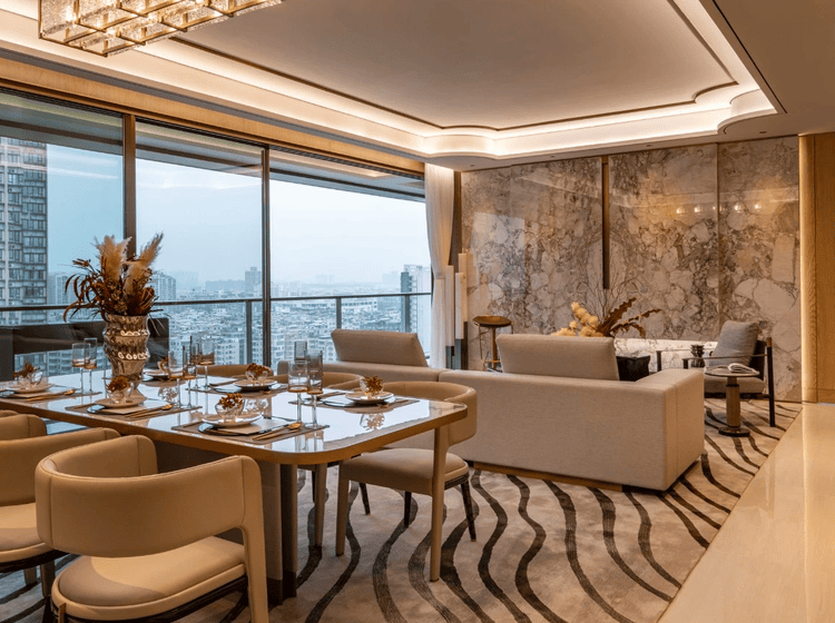其中,高层户型涵盖平层与复式,面积均大于100㎡(具体以项目实际公布为准),四房设计;叠院户型面积涵盖158-210㎡。