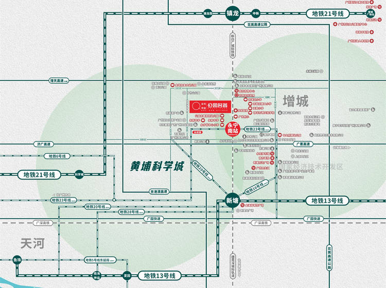 金地·公园名著位于新新公路与创盈路交叉口西南140米,项目一路之隔享钧明悠方双商业,看公园,城轨旁,1站到新塘,2站科学城。