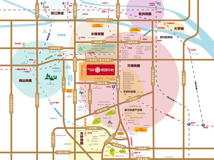 项目位于番禺发展主轴番禺大道北,南部链接天安科技园,北端串联长隆—万博商圈,产业、商圈双加持;背靠里仁洞百亿旧改,坐享红利
