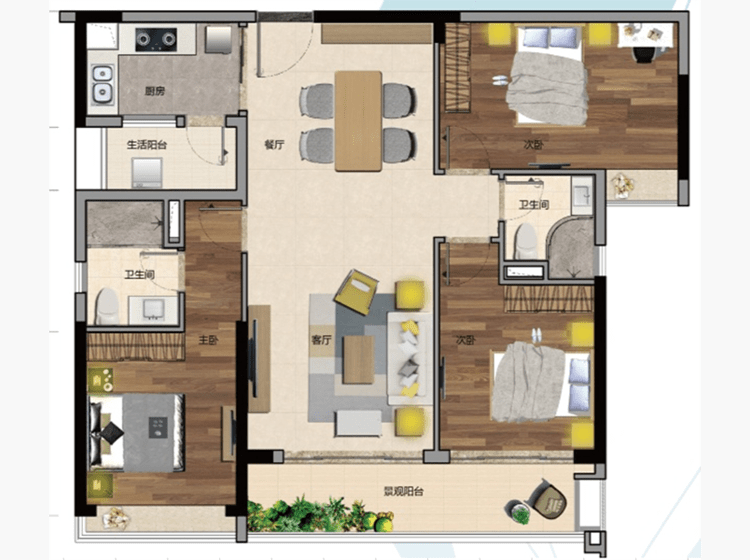 在售 户型方正 全明格局 主卧带卫 干湿分离 观景飘窗