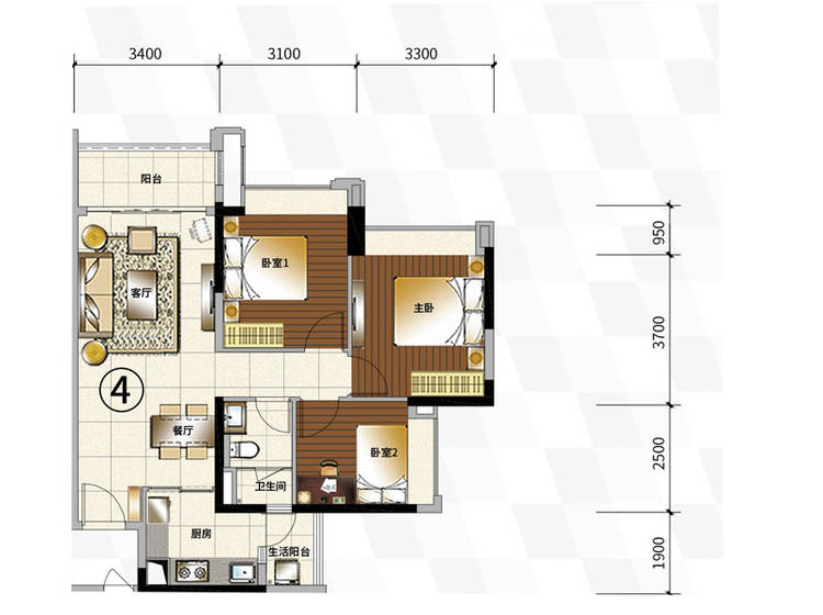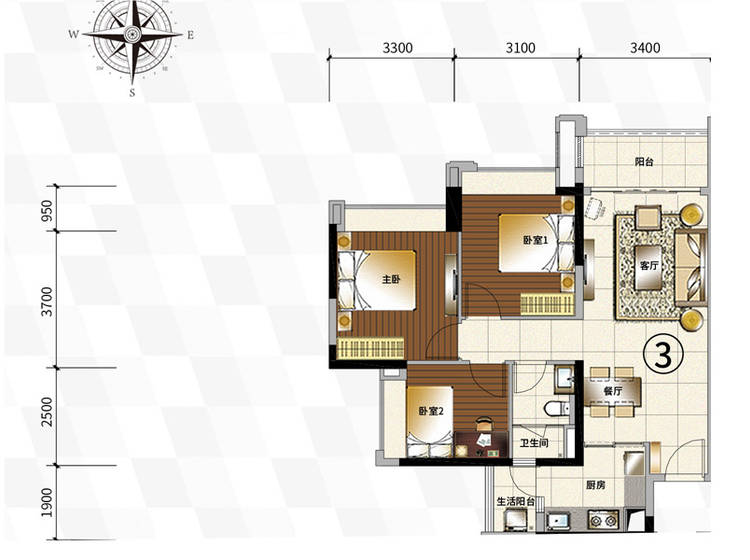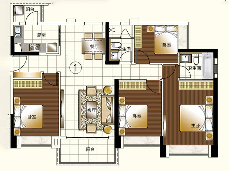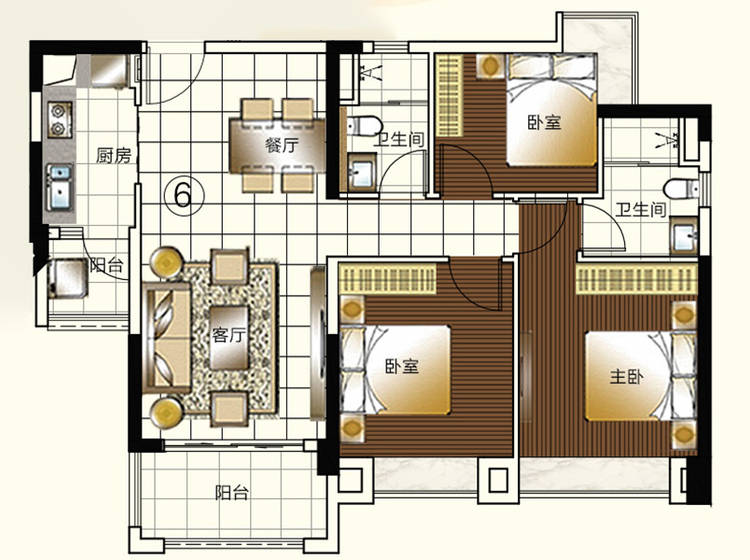 在售 户型方正 全明格局 主卧带卫 干湿分离 飘窗 观景飘窗 双阳台