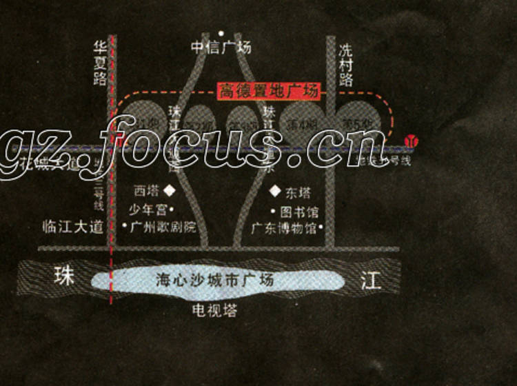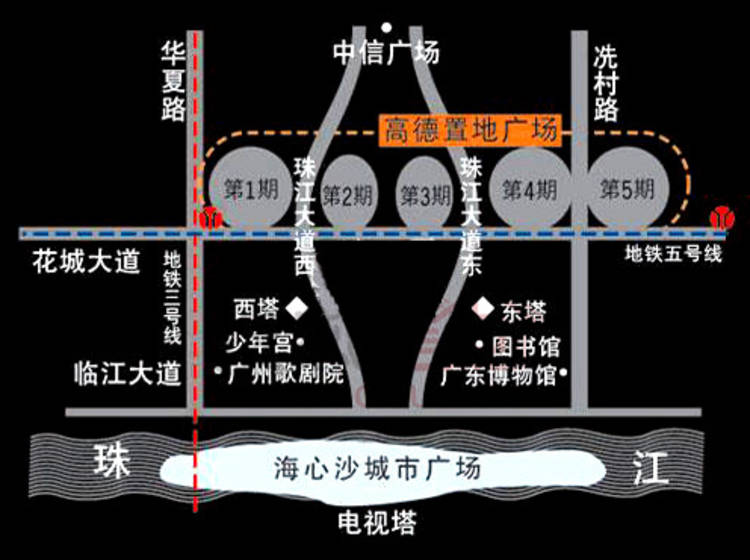 地面:东有冼村路,西有华夏路,南有花城大道、临江大道,北有金穗路、黄埔大道