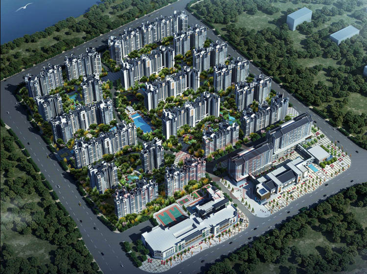 5万㎡商业配套,包括大型的商业中心、1000㎡华润万家和肉菜市场;2万㎡康体场馆,包括小型足球场、羽毛球场、网球场和游泳池等设施,5万㎡大型商业