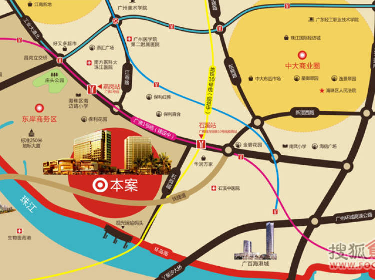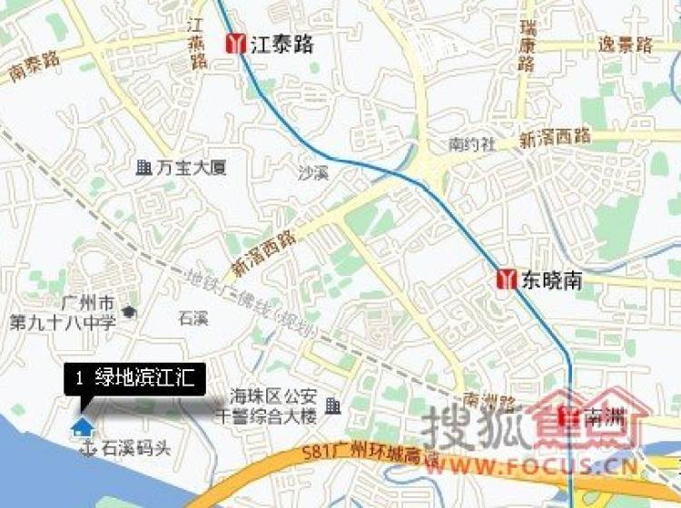 绿地滨江汇位于海珠传统商住中心,地处工业大道石岗路段,是广州城市中南部核心发展区域地带、南拓的重要组成部分。地块东侧为石岗路,南面为珠江水岸,北边紧邻保利地产开发的保利花园项目。项目周边交通、生活配套齐全,大型居住小区云集,且距广州各区仅10分钟车程。
