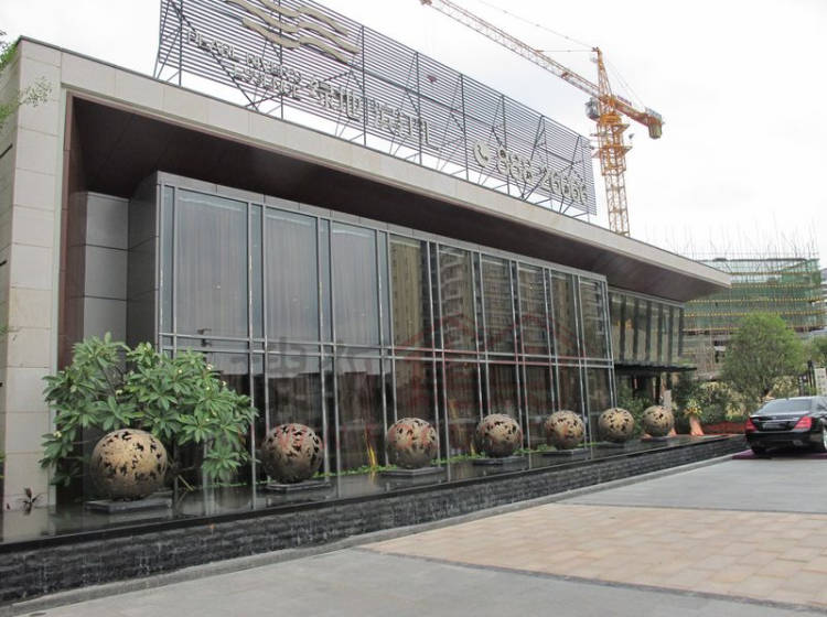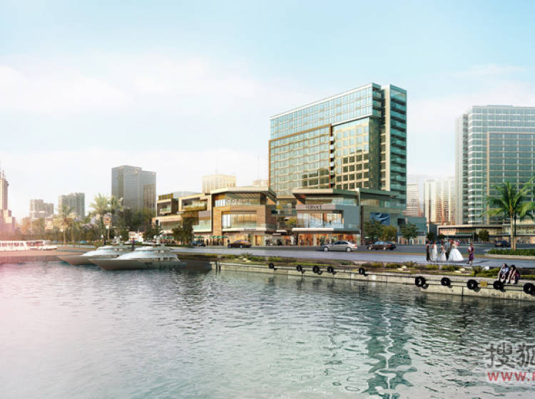 项目呈半围合式建筑布局,整个小区考虑商业动线与住户动线的严格区分,通过设置地下车行道与地上商业人行道,既保证住户空间私密性,又营造浓厚的商业气氛。同时项目在东侧临石岗路打造开放式商业连廊,充分利用临街商业价值及围绕江景全力塑造滨江商业艺术街区。