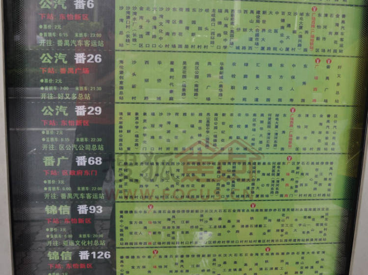番禺汽车客运站: 番160路、番153路、番1路、番68路、番151B路、番149路、番126路、310路、番97路短线、番99路、番16路、番100路、从化-番禺客运站线、番103路、番162路、广佛城巴20路、番106路、番161路、番91路、番10路、番97路、番148路、番93路、番6B路、番6路、番51B路、番29路、番141B路、番142B路短线、番26路、番142B路