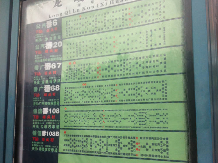 番108路:福德路口站,沙园村站,禺山高级中学站,龙岐路口(西环路)站,岐头村站