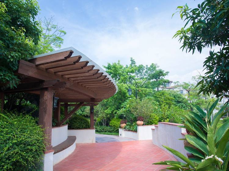 康体配套:高尔夫训练基地、广东省休闲体育园、古朕温泉室内游泳馆、水上乐园、羽毛球馆、O’SPA圆泉