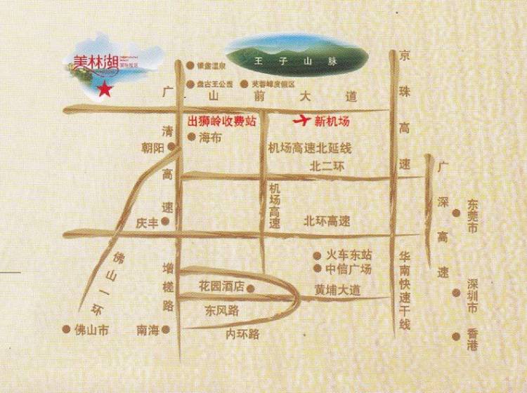 佛山:佛山一环—广清高速—花都狮岭山前大道祥安出口;