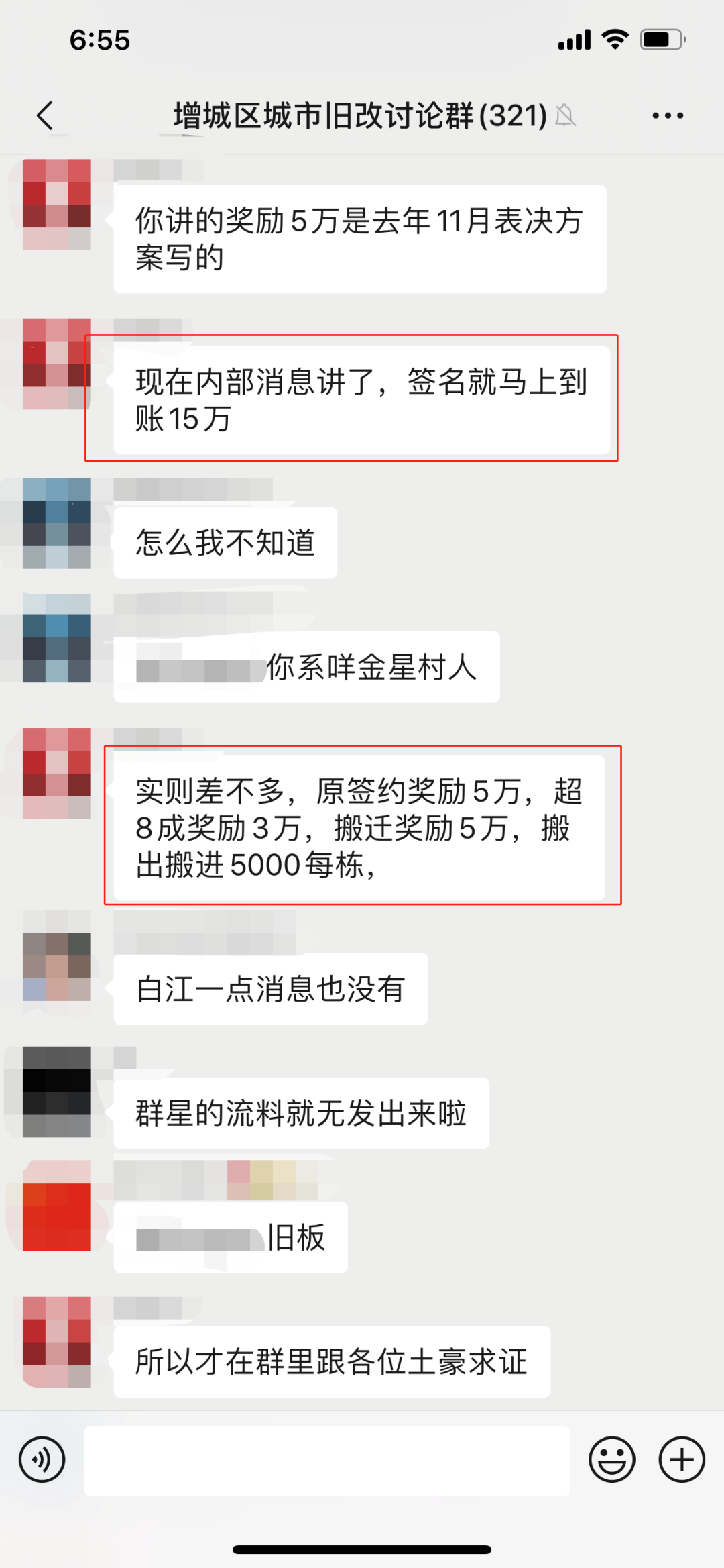 今天,房产君就在本地的旧改讨论群上看见,有村民讲到金星目前内部的赔偿情况,说签名马上就能进展账15万。
