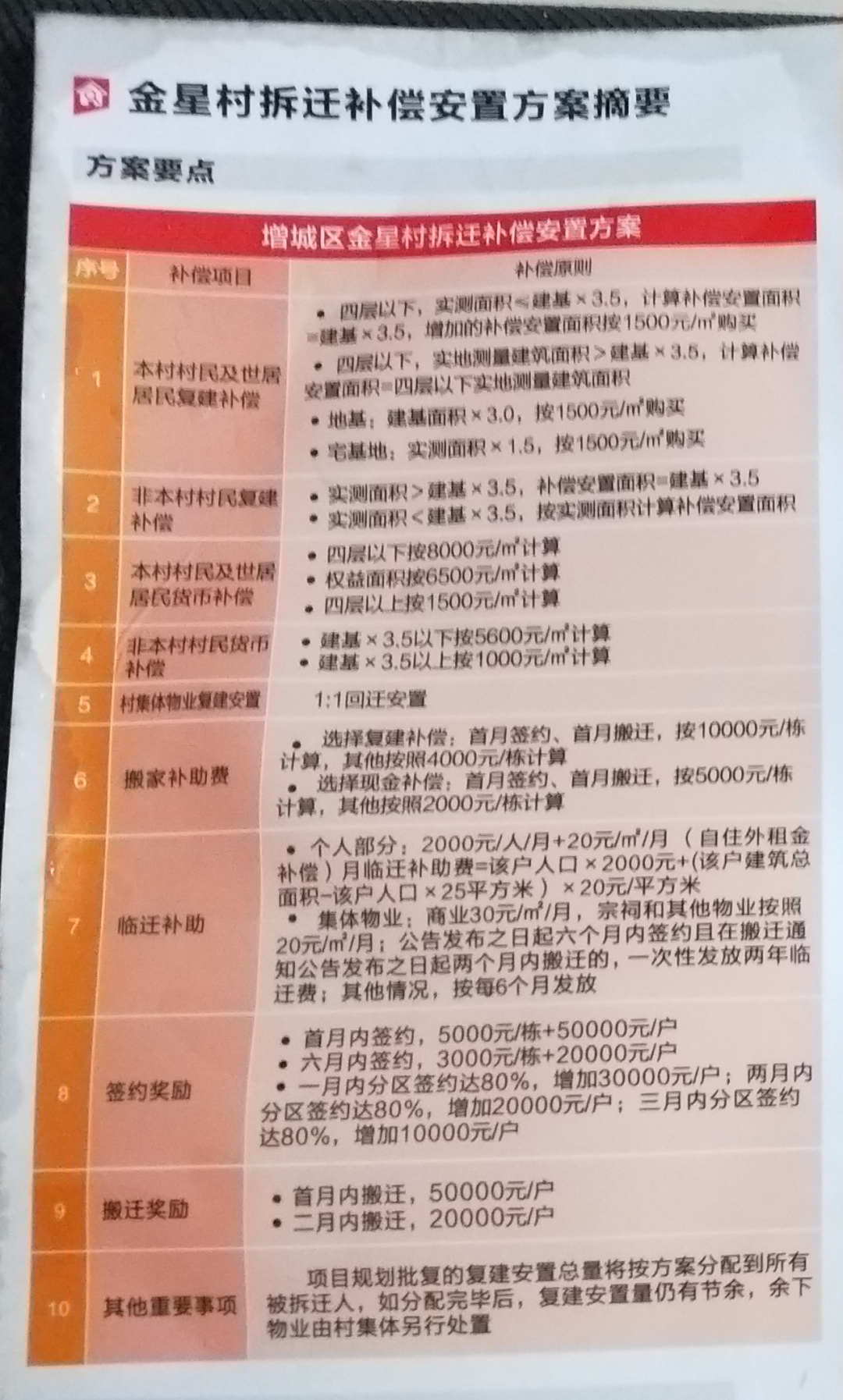增城“猎德”拆迁补偿安置方案现身