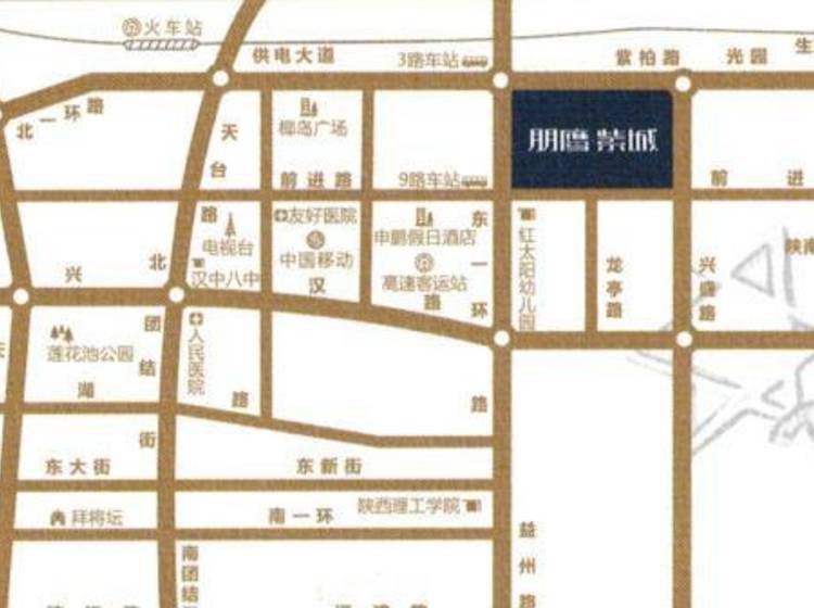 朋鹰·紫城位于汉中市汉台区东城区东一环路和供电大道交汇处,处于政府规划的紫柏路南侧,项目东侧是规划中的陕南植物园公园,北邻建昌卡斯迪亚、和谐家园,城市公交起点站(距本项目约200米),西接成熟的前进路片区。区域规划起点高, 汉中城市的发展方向为 “南移、东扩、西进、北优”。 处于江北中心城区规划的城东新区:依托老城区向东扩展,连接铺镇,形成以商贸、行政、居住、教育、休闲功能为主导的占地8.8平方公里的现代化城市新区。是汉中21世纪新城区,是位于汉中主城区且地势平缓开阔的大面积开发区。随之而来的学校、公园、医疗、商业等配套设施日趋完善。优越的地理位置和巨大的发展潜力,必将成为汉中人民实现高品质生活理想之地。 地理位置上的优势更高的提升了整个项目的尊贵品质,项目占据城东新区的核心地段,享有便利的交通,拥有多路城市公交车起点站,同时到汉中火车站不足3公里的距离,从本项目到高客站仅2公里的距离。住在这里既相对避开了城市的喧嚣,又能享受到了繁华的都市生活。