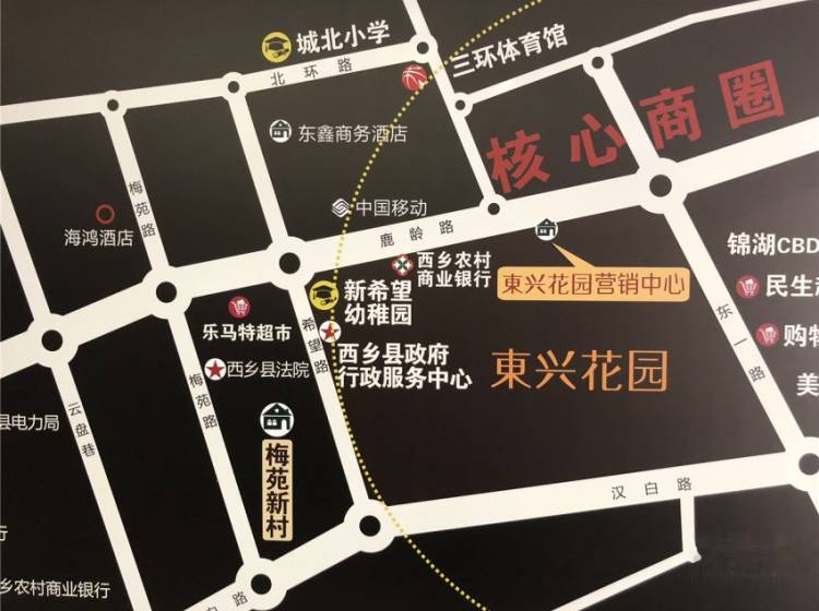 东兴花园小区位于汉中市西乡县鹿龄路,小区占地面积18万平米,总建筑面积42.2万平米。东兴花园环境优美,南有牧马河,东有锦湖中央商务区,东有河滨公园是您和家人休闲散步的好去处。小区内人车分流,并设有中庭景观广场。 东兴花园小区周边配套一应俱全,学校、医院、银行、超市、菜市场近在咫尺,形成5生活圈。它向所有人展示着它的美丽。东兴还原小区拥有江边美景,东融城市中心,以的优势显示着它的地域价值,可谓潜力无限,是西乡一座城市的地标性住宅小区。