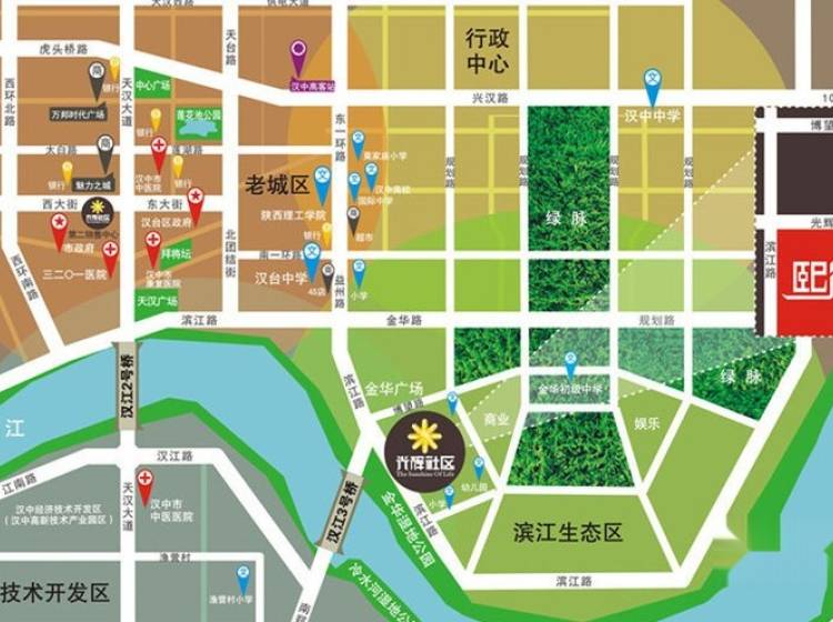 熙岸新苑位于光辉社区C2区,建筑面积近10万平米,以打造高品质住房为目标。1期熙岸新苑全部为现房,有“新中式”主题原林、全瓷砖电梯大堂、大理石外立面商铺等高端配套。汉师附小第2小学近在咫尺,足不出区、享受高端教育配套,周边更有汉中中学、陕西理工大学等学校配套。一线江景、湿地公园等环绕周边,是居家生活的优选之一。 光辉社区是经市政府批准实施的中心区域保障性住房重点项目,项目北起博望路、南至逊至路、西起滨江路、东至光辉路,总占地854亩,分A、B、C、D四个区域同步建设,社区配建公共绿地、社会停车场、汉师附小第2小学、医院、幼儿园、垃圾回收站等公益性设施。