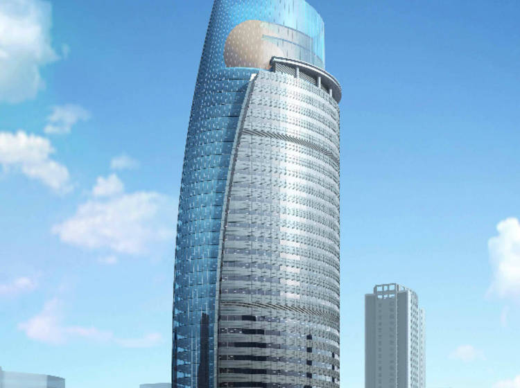 华韵金融时代广场占地约27亩,由鹤壁金融大厦和两栋配楼--华韵财富公馆组成,整体业态由写字楼、公寓、和商业组成。其中金融大厦是整个鹤壁市地标性建筑,高约168米,38层,项目总投资5.8亿元,大厦造型灵感来源于我们鹤壁“淇河三珍”之一的淇河鲫鱼。金融大厦流线型的造型优美,充满的动感,是整个城市沿河新区的中心。大厦顶部的球形观景设施又如同城市之眼,将整个新区尽收眼底。 金融时代广场是一栋综合性的办公楼。项目总建筑面积:114141.0㎡;商业、办公面积:67006.9㎡;地下面积:19385.7㎡;公寓面积:28140.0㎡。容积率为5.35,建筑密度为36.4%,绿化率18.7%。