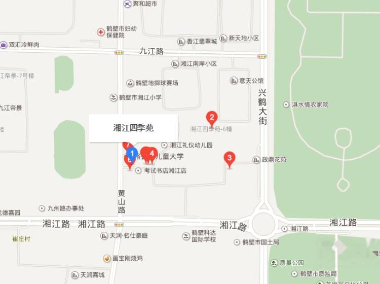 建筑围合建筑超越繁华之上采用围合建筑,更适合中国人居住习惯,两座建筑成一庭院,中居高层,错落,围合。平坡结合的屋顶,庭院式设计,大面积观景窗,阳光房,6层复式电梯,现代,尊崇,雅致而不张扬的生活在不经意间流露。户型高尚居住尊重人本生活围合就好像在跟业主们发出一种邀请,让业主们能够在一种轻松自然的气氛下进行沟通。湘江四季苑建筑形态以“住宅一院落一围合”三重空间渐进格局分隔成各个功能分区,通过各种手段强化了社区人际交流,项目的“有声”概念是对社区文化、人际交流的一种深层理解。区位城南核心未来无限鹤壁淇滨区湘江社区---城市生活的方向,政府力推的城市建筑名片。湘江四季苑,18万平方米大手笔。东临兴鹤大街,南临湘江路,湘江四季苑比邻市文化中心,体育中心,淇河公园;周边分布医院,学校,商业广场,超市,餐饮,游泳馆等配套设施,我们致力成就一个舒适惬意,安静便利的高尚社区典范。文化品质人生超越繁华之上现代社区缺的是什么?不是优质的建材,不是精巧的设计,甚至不是优美的环境,而是社区文化。院落富有个性特色的庭院景观设计,赋予独特的气质和文化。