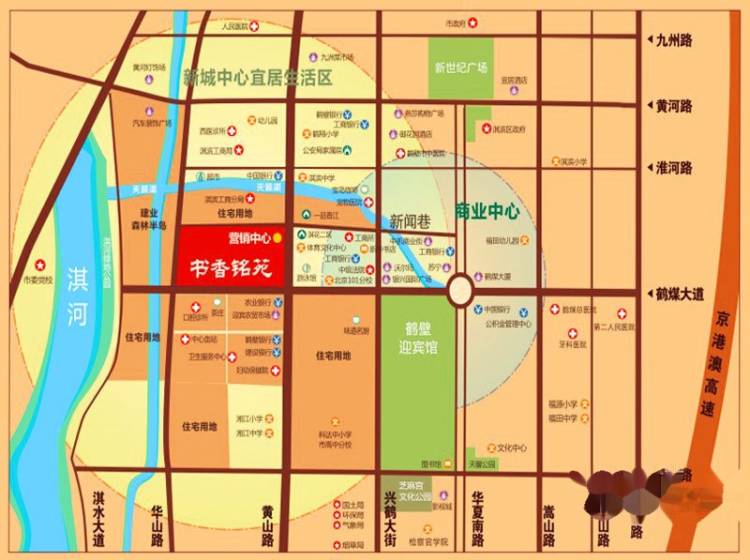 书香铭苑小区,总投资10亿元,位于华山路东、淮河路南的鹤壁职业技术学院老校区,占地面积约200亩,总建筑面积33万平方米,规划建设一个中高档住宅小区。小区包括高档商业、办公会所、物业服务和幼儿园等配套设施,建成后可容纳2700余户居民居住。