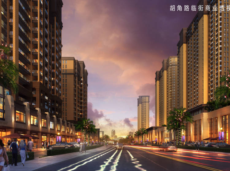 项目总占地面积12万方,总建筑面积50万方,绿化率36.06%,整个项目以胡角路为中心由南往北建设开发,由20栋高层电梯房及1栋酒店式公寓组成,并规划有吃喝玩乐购为一体的BLOCK商街,商业面积近3万平米。