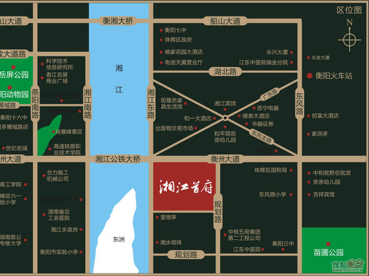湘江首府位于衡阳市珠晖区,紧临湘江,位于沿江风光带的东侧,北靠新开通的衡州大道,南依美丽的东洲岛。地处湘江高品质生活圈,江东成熟商业圈以及衡州大道经济圈的三圈交汇之地,地理位置非常优越。本项目坐拥城央一线江景资源,打造的是高品质江景豪宅,随着衡州大道成为衡阳交通主动脉以及经济发展的主轴线,区域升值潜力无限。