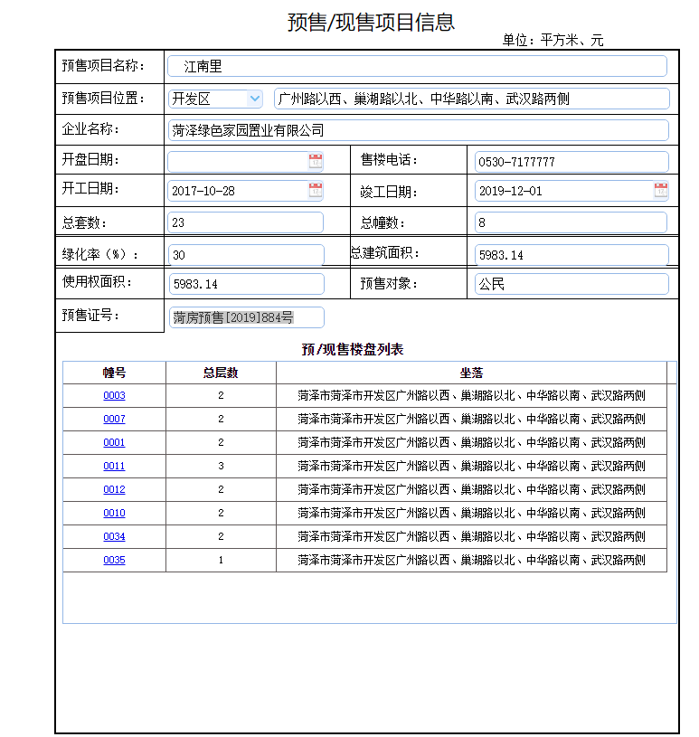 - 菏房预售[2019]884号 详情发证时间 2019-11-07绑定楼栋0001、0003、0007、0010 0011、0012、0034、0035证件照片