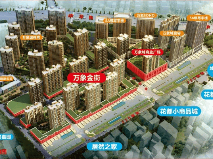 牡丹万象城是由菏泽交通集团和天华地产强强联合,在成功开发中国牡丹商贸城一、二、三期项目基础上,继续加大投资建设的四期工程项目,是集高档居住、超级商业、星级酒店、旅游观光、文娱和交通等功能于一体的菏泽百万级以上的城市综合体项目。牡丹万象城做为中国牡丹商贸城重要组成分,建成后项目将成为西部的核心商业圈---“城中城”,也将是“中国牡丹城”创建的“新名片”,为我市的建设“五大基地、一大产业的”进程中发挥积极作用。 项目位于中华路西路与220国道交汇处,占地面积322.6亩,总建筑面积约120万平方米,投资概算35亿多元。其中,城中村改造给村民建设精品住宅面积约15万平方米;高层商住楼面积约85万平方米;星级酒店、商业街、市场等商业面积约35万平方米。本项目是将城市中商业、办公、居住、购物、酒店、餐饮、会议、休闲、文化、娱乐、观光等交通枢纽等城市功能在空间上进行组合,并在各功能城市综合体功能框架间建立一种相互依存、相互补益的能动关系,从而形成一个多功能、高效率、复杂而统一的综合体。整个项目建成后将成为菏泽的一座现代化、标志性、高品质的城中新城建筑群体,对改善我市城市功能,提升城市形象、居住品质、商务氛围、消费趋向、完善商业格局及推动我市现代服务业集中发展具有重要的意义,将在促进我市经济发展中做出巨大贡献