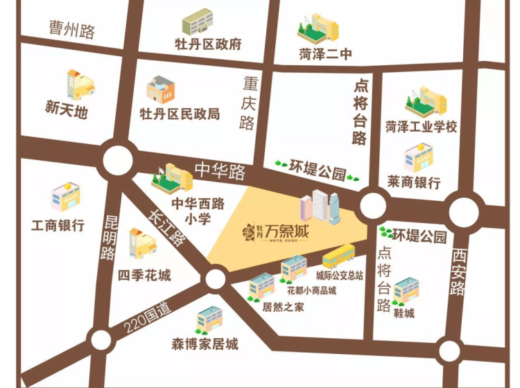 其他:牡丹体育广场、五星级酒店、5A级写字楼