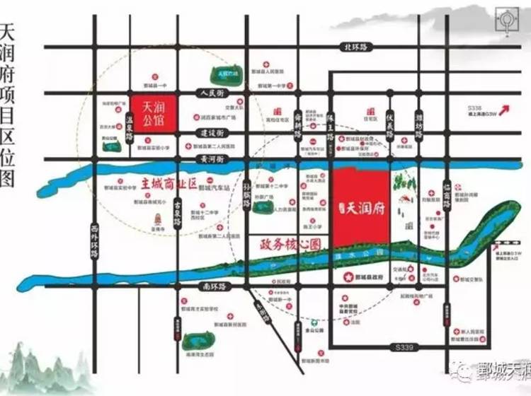 市政配套:濮水公园、新一中、县政府、党校、法院