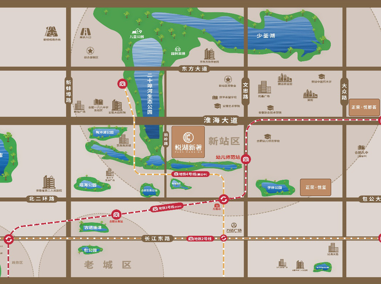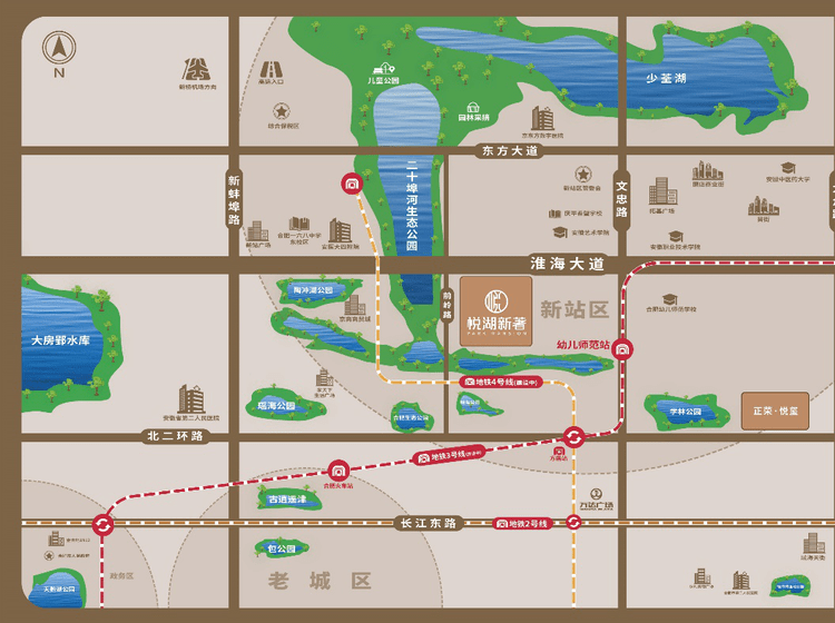 悦湖新著项目,位于新站高新区淮海大道以南、前岭路以东 , 占地面积101.751亩。公园头排·地铁旁·新青年逐梦作品 , 于约2668亩二十埠河生态公园旁,打造一处契合当代新青年需求的智慧人居住区。