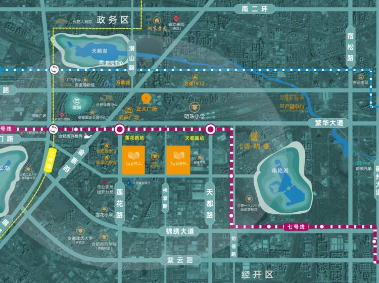 地铁7号线(莲花路站、天都路站):距离项目较近,预计2025年完成一期建设,未来通车后可直达合肥主城区及滨湖新区。