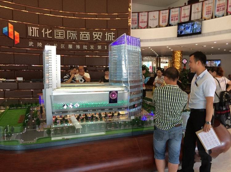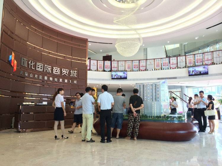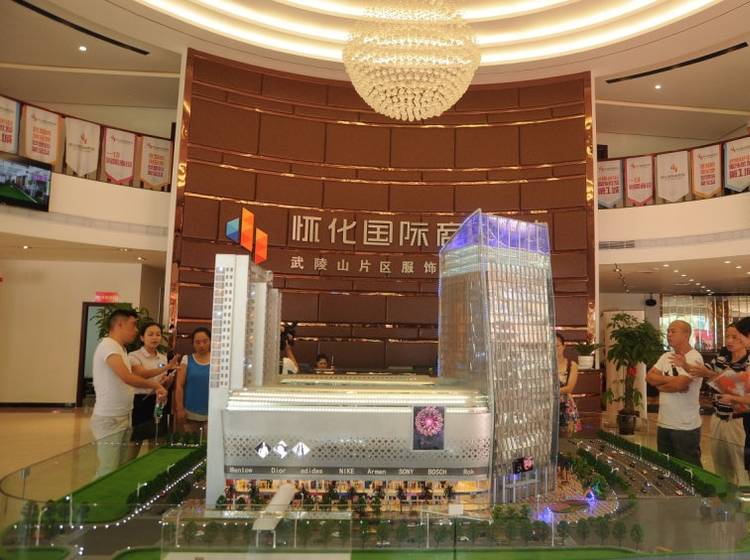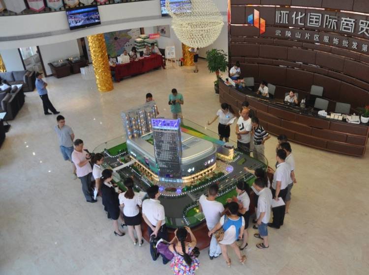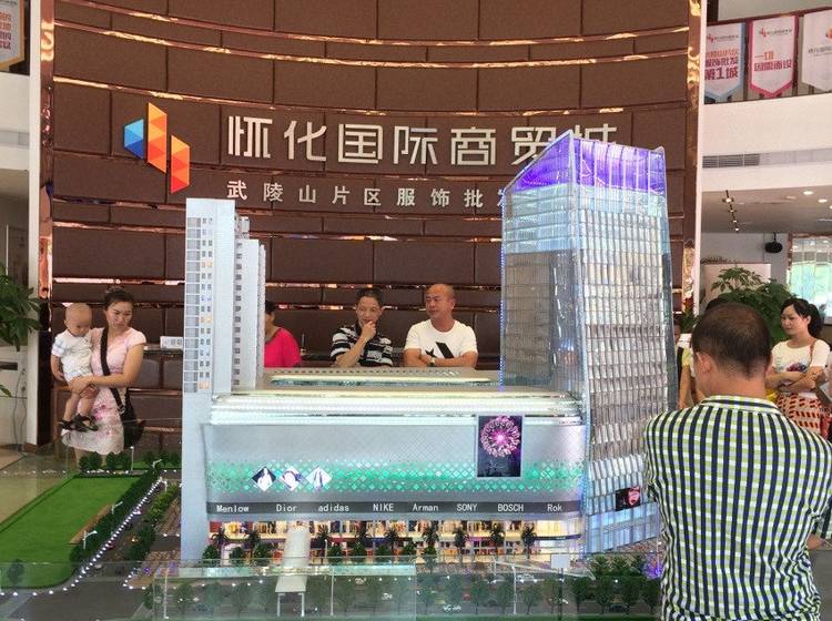 怀化国际商贸城被列为怀化市商贸物流重点项目,占地面积46亩,建筑总面积17万平方米,主体建筑地下三层、裙楼七层,总高度在100米内,总投资10亿元。项目将打造成武陵山片区服饰批发第1城,业态主要以男女服饰、鞋类、箱包、皮具、针棉、童装等业态为主,辅以餐饮、商务公寓为一体的现代综合批发专业市场,负一层为鞋业箱包皮具专区;一层业态为精品百货专区;二、三层业态为女装;四层业态为男装及品牌专区、五层业态为童装专区。