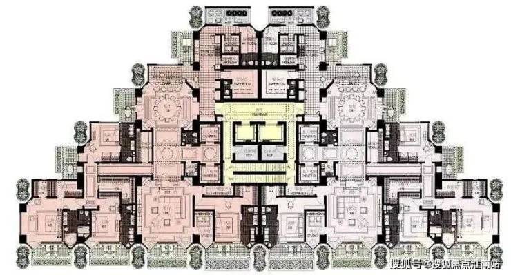 外部设计已经足够令人震撼,内部户型更是壕到无法想象。独特的金字塔设计,仪式感超强。所有住宅单元都尽可能南向,拥有360°采光的同时不浪费一丝一毫的江景。