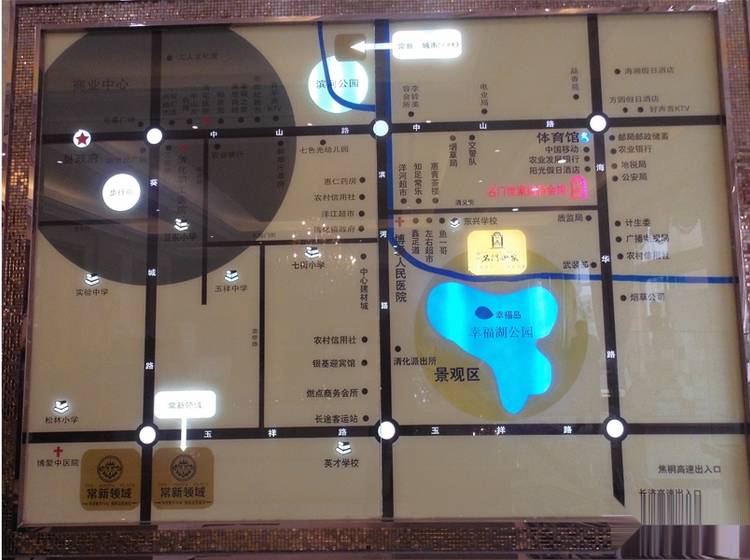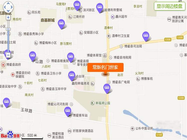 常新·名门世家傲居博爱核心地段,毗邻海华路城市菱道。 居城中心,享中山路、滨河路成熟生活配套。 项目位于博爱城区东部沿幸福河北岸而建,东临主干道海华路,交通非常方便,南面正对着博爱县唯一的也是最大的景观湖公园-550亩幸福湖公园,拥有稀缺的河景、湖景双水景资源,景观环境绝佳。项目距新世纪广场约2公里,距中山路体育馆约800米,距滨河路及县人民医院约500米。项目东侧为县武装部,北面为东兴幼儿园和东兴学校,西侧为幸福港湾、清华苑商品房小区。项目周边清义街及滨河路已经形成了较为成熟的居住氛围和生活配套(在图上列举),生活非常便利。但我们项目跟周边小区及建筑是完全区隔开,通过沿河景观道及自建景观桥进入小区,具有非常好的私密性,可谓出则繁华,入则宁静,大隐于城。