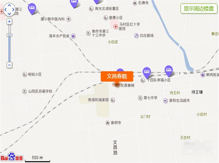 文昌春晓位于焦作市马村区待王路与文昌路交汇处150米路东(焦煤和谐家园对面)。是马村区政府2013年重点扶持项目,马村区首席全地下停车场。由河南明兴置业重金打造的全框剪电梯洋房。小区占地107亩,共开发10栋高层住宅。总建筑面子约15万平方米,容积率2.1,绿化率高达40%,共分三期开发,一共一千多户。 文昌春晓,90-143平方米舒适两房,尊贵三房户户南北通透,动静分区,小区内部建有2000平方米景观休闲主题广场,大型知名连锁商业,社区商业等各种配套设施全新为您服务;天然气,暖气,有线电视,电话,互联网络等一步到位,让业主都能享受到方便和尊崇!国内知名物管公司入住以后会对小区布置监控系统,保安全天候巡逻,确保您的安全。为了方便观景及采光我们在项目整体建筑及规划上还做到了:坐北朝南,楼体之间50米超宽楼间距,40%的超高绿化率,可以说是推窗纳景!文昌春晓楼宇外立面采用优质乳胶漆使整体显现高端,大气。25米超宽小区主入口直接进入小区的中心。小区实行人车分流,车辆分别由南,北二个车辆主入口进入地下停车场。保证了广大业主区内安全。超大的地下停车场让业主无停车之忧。