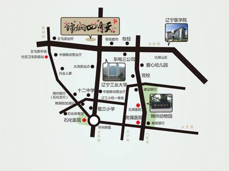 商业:本项目兴建大型商业综合体,附近有东东快车超市,王屯市场,辽工市场,牧校超市,大拇指超市。 教育:敬三小学,爱心幼儿园,卫校,牧校,辽宁医大,辽工,十二中学,农经,党校 金融:建行,锦州银行铁北支行,工商银行,邮政储蓄所,交通银行,中国银行 医疗:北湖医院,205医院,附属医院,石化医院 业主会馆,商业街,商业街两侧大型绿化带